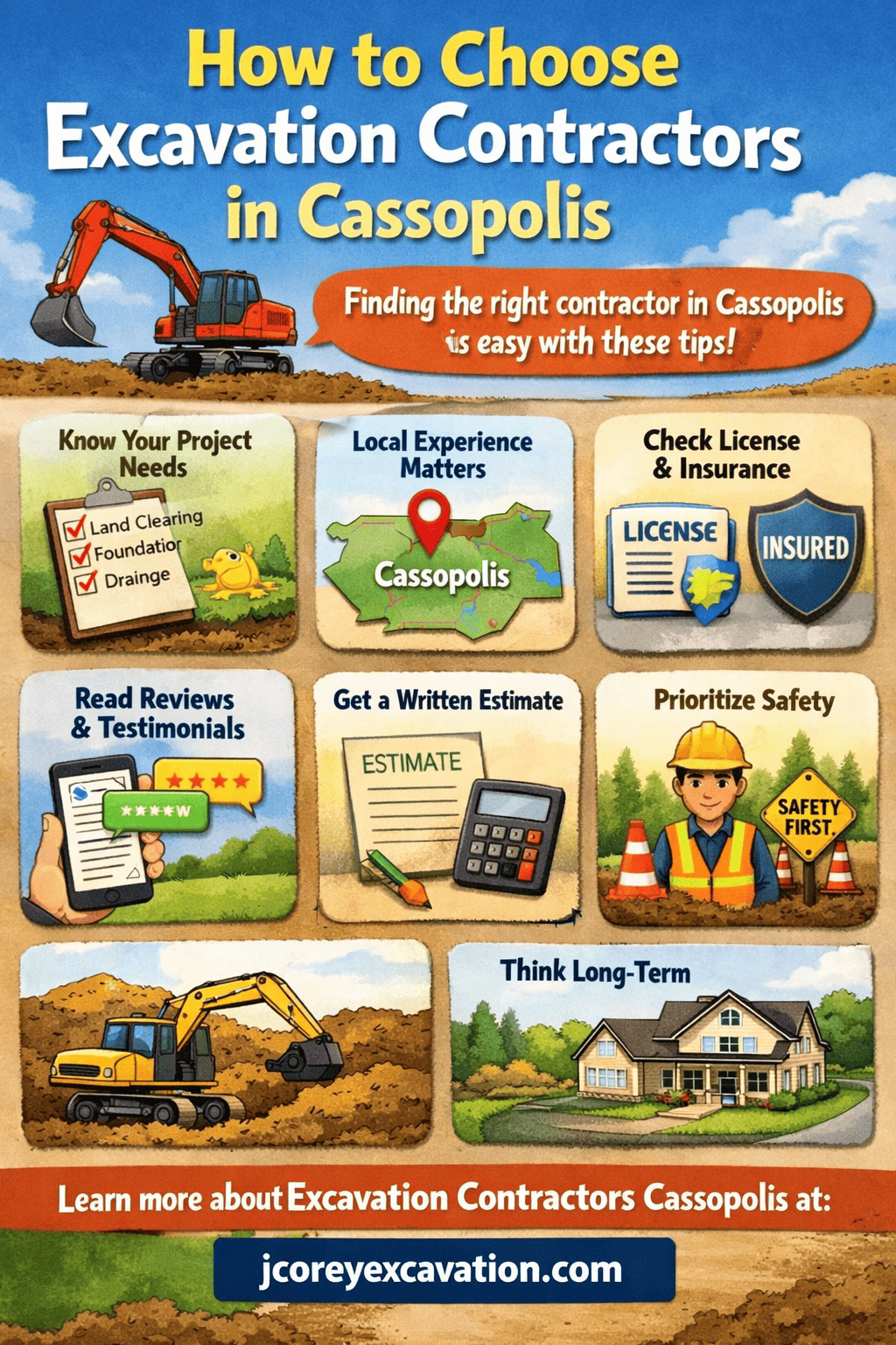 By now, you know what to check: experience, insurance, equipment, reviews, pricing, safety, and communication. Compare your top choices calmly. Trust both facts and your instincts. When a contractor checks all the right boxes and treats you with respect, you likely found the right partner for your project. If you are looking for reliable service backed by local knowledge, many property owners recommend learning more about professional services at jcoreyexcavation.com.